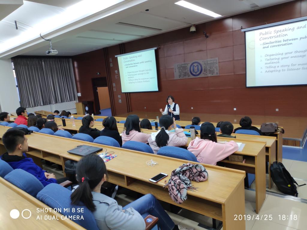外国语学院沈红梅教授做了题为:“英语与国际竞争力”和“如何提高英语公共演讲能力”两场讲座。