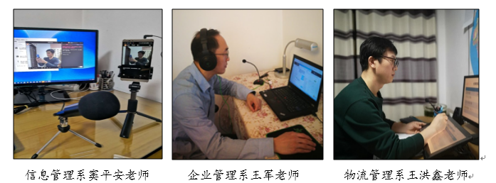 在线教学第一周,每个系的老师都不断在系微信群里总结各自的教学心得。管理科学与工程系的于宝君老师、国际商务系的马鸿佳老师和信息管理系的窦平安老师也分别从在线教学设计和授课方案、在线平台选用及教学技巧、直播设备准备和直播教学心得进行了典型案例分享。技术经济系、国际商务系、企业管理系、物流系各自从系里不同教师在线教学特点、方式、心得体会等进行了以系为单位的教学经验分享。这种由“点(骨干教师)”→“线(系级组织)”→“面(全院教师)”立体化在线教学组织形式,极大地凝聚了学院疫情期间各位老师在线教学的热情和学习分享的激情,很好地推动了学院在线教学课程的建设。
