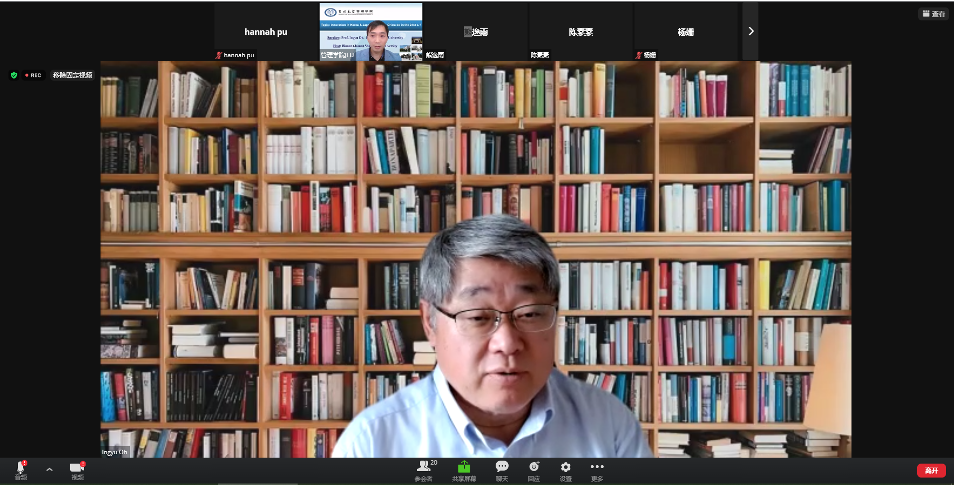 随着中国企业在创新方面的活力被激发,如何吸收国外的先进经验,走出符合中国国情的创新路径已成为研究热点。为启发学院师生对中国在创新方面与其他国家的差异及改进路线进行深度剖析和思考,2021年9月20日下午13:30,管理学院成功邀请日本关西外国语大学Ingyu Oh教授为我校师生作题为《Innovation in Korea and Japan: What can China do in the 21st century?》的学术报告,报告采取线上形式,由技术经济及管理系单标安副教授主持此次学术报告。