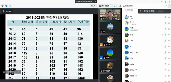 为切实提高师生国家级科研项目的选题论证水平,11月21日晚,由社会科学处和管理学院共同主办,南开大学商学院教授、国家社会科学基金项目图书情报与档案管理学科评审专家柯平主讲的《国家级科研项目选题与论证》学术报告在线上召开,管理学院副院长马捷教授主持了报告会,管理学院信息管理系李贺、张向先、刘佳等教师参加了会议并进行会议交流,来自我校相关单位的200余名师生参加了会议。