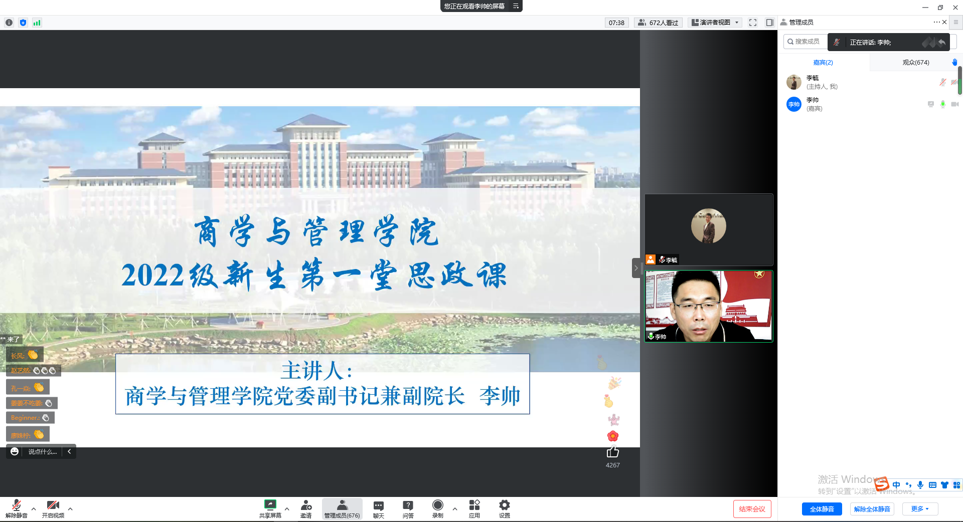 党委副书记兼副院长李帅老师主讲。按照疫情防控要求,全体2022级新生线上参加。