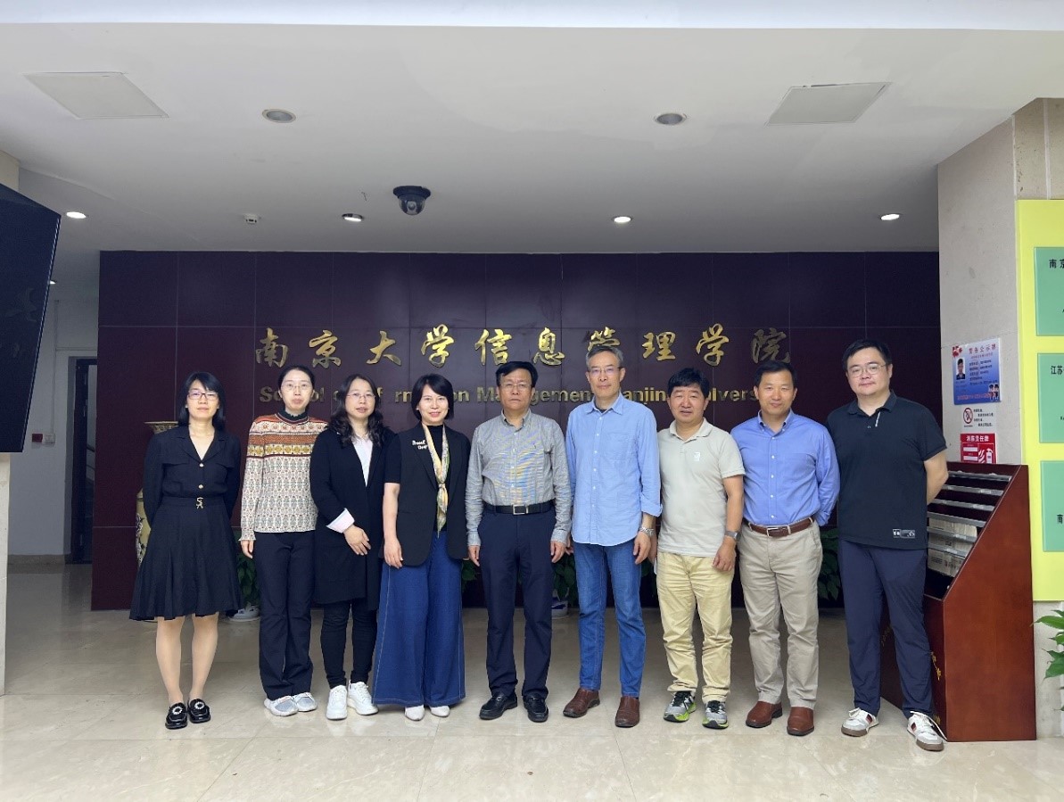 2022年9月14日,国务院学位委员会和教育部联合印发的《研究生教育学科专业目录》中将原“图书情报与档案管理”一级学科更名为“信息资源管理”,开启了信息资源管理学科发展的新定位与新布局。为了进一步推进学科建设高质量发展,学习借鉴兄弟院校学科建设的举措和成效,按照商学与管理学院“学科调研计划”,信息管理系马捷教授、邓君教授、张卫东教授、宋雪雁教授、郭宇副教授一行五人,于9月25日—29日赴武汉大学、华中师范大学、南京大学、南京农业大学进行学科调研。