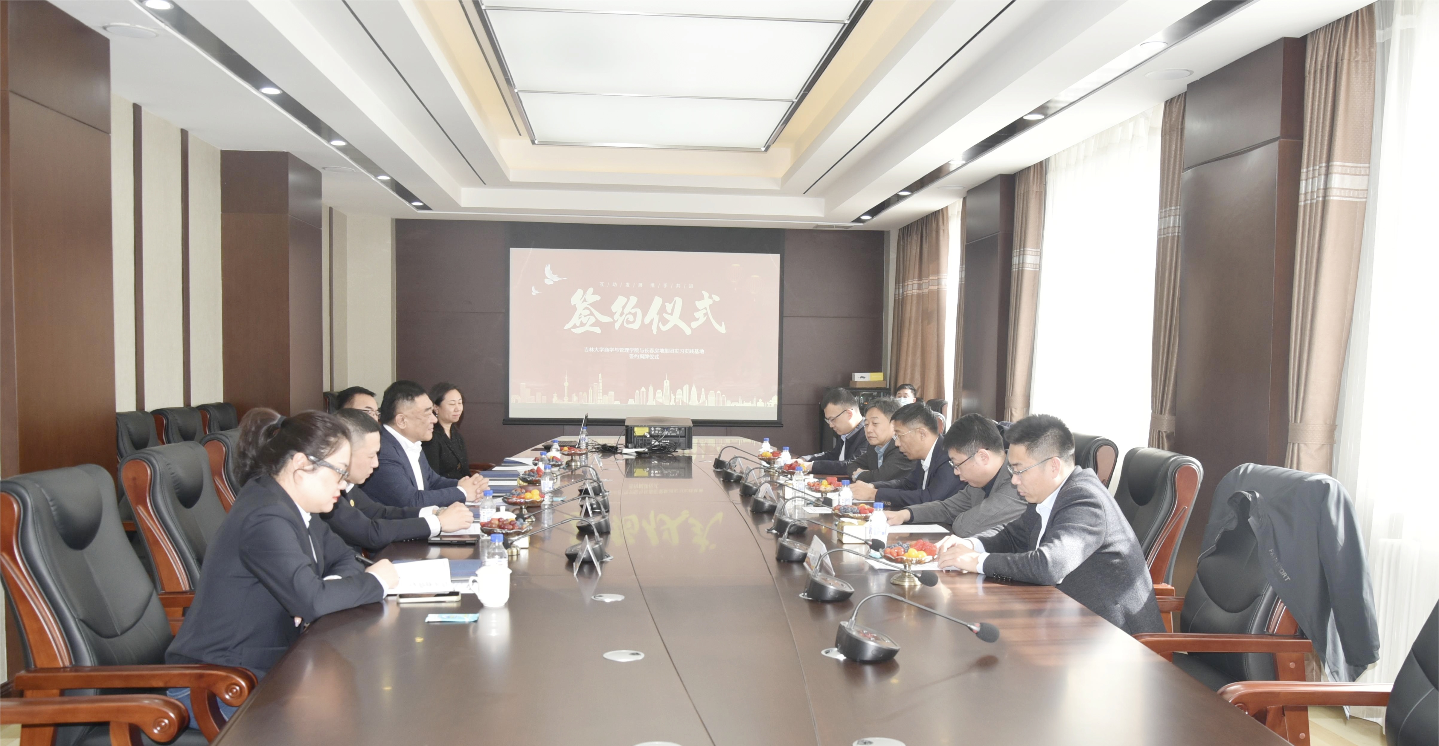 和长春房地集团实习实践基地揭牌仪式在长春房地集团一楼会议室举行。长春房地集团董事长、总裁王玮,党委书记、副总裁张锋,财务总监肖涛、长春市景生职业培训学校校长赵程秀、长房集团人力资源部部长吕丹;Porcore