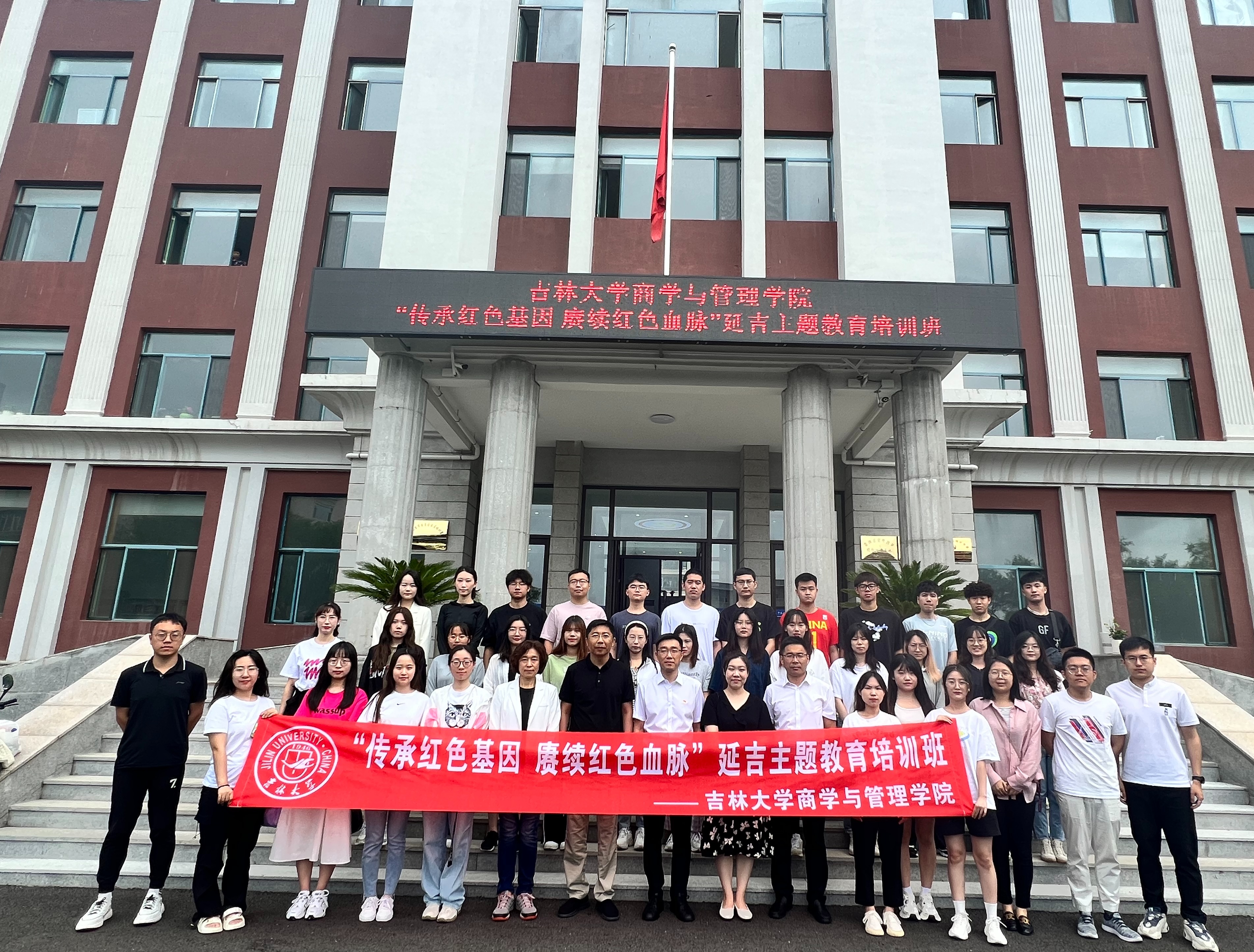 组织师生前往延吉市太兴红色小镇与汪清县,开展“传承红色基因 赓续红色血脉”主题教育培训班。本次培训班由学院党委书记赵军带队,其他参加活动的老师还有学院党委副书记兼副院长李帅、党委副书记马腾、副处级组织员张捷、博士生导师郭润萍、研究生辅导员裴月莹、王敬乔以及本科生辅导员禚传阳。学院教师党支部、本科生党支部和研究生党支部共计50人参与本次学习活动。