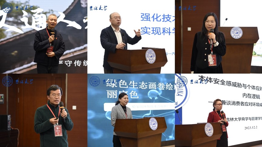 经济学院杜莉教授做了以“绿色金融如何赋能我国钢铁行业绿色转型”为主题的演讲,阐述了钢铁产业的发展背景及低碳转型政策的演进过程,并通过一系列实证研究给出研究结论;云南大学经济学院文传浩教授分享了生态系统服务业的概念、逻辑与框架,以诙谐幽默的语言风格介绍了传统产业分工及其局限性,强调了产业再分化及第四产业发展的必要性;上海财经大学商学院高维和教授分享了从绿色到低碳的营销战略研究,并浅谈了对未来营销研究趋势的心得体会;江南大学商学院龙如银教授汇报了“绿色消费研究:演进、趋势与展望”,从国际碳排放视角出发,指明绿色消费的来源和迫切性,强调减碳的重要领域应聚焦于消费端;中国矿业大学经济管理学院丁志华教授阐述了绿色低碳消费的内涵界定、现实困境及对实现路径的思考,从“双碳”等政策发布时间线的角度详细阐述了我国全面促进消费绿色低碳转型升级的重要意义。