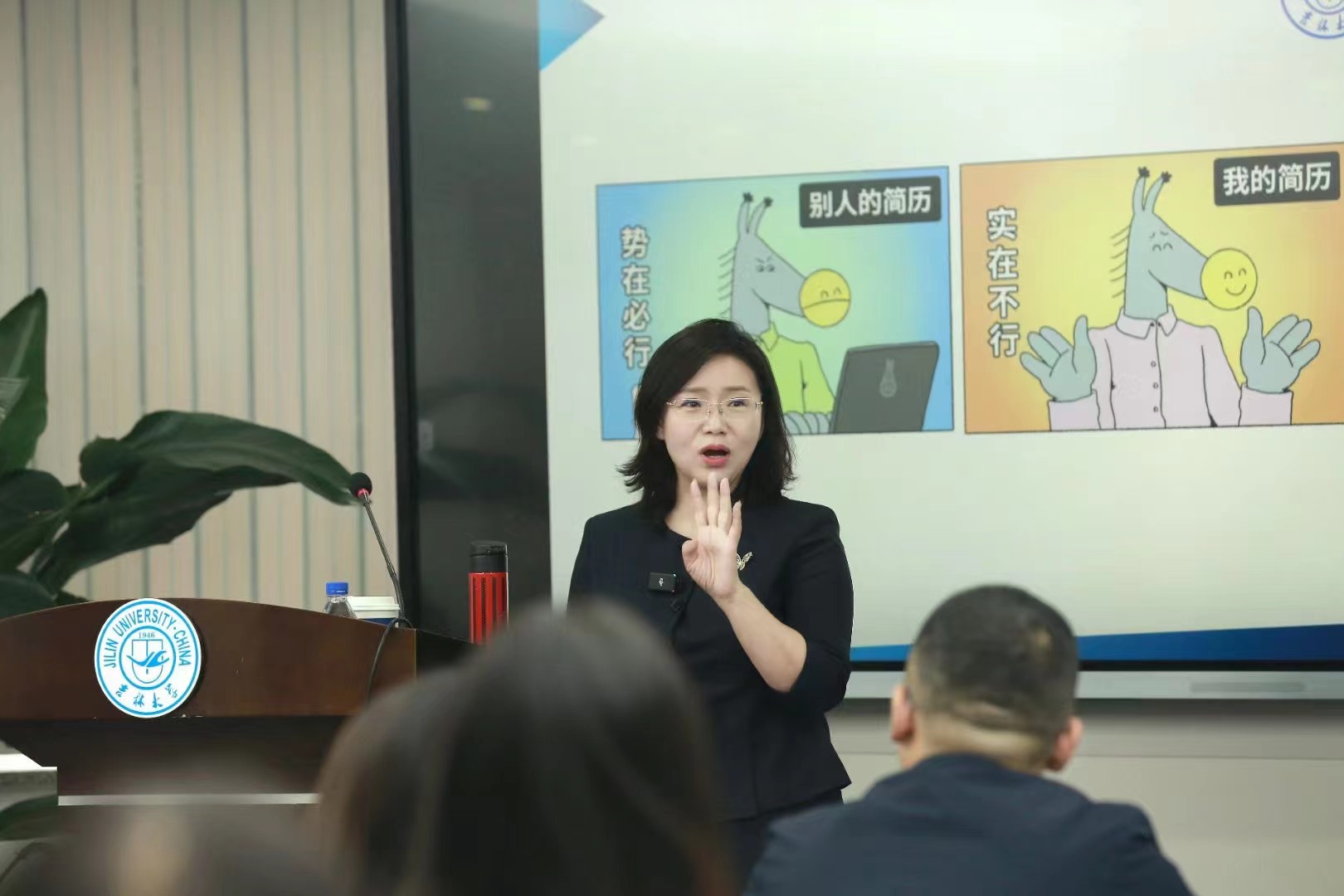 副教授苗宏慧老师作为主讲嘉宾。苗老师长期从事战略人力资源管理、人才测评与面试技术职业生涯规划、组织行为学等方面的教学与研究,在本次讲座中,苗老师收集了学院40名不同专业研究生的简历,在讲座之前用大量的时间对其中的问题进行归纳,找出同学们当前的困惑;现场则从简历五星标准、结构慎终如始、“假如我是HR”三个角度进行分享,逐一点评同学们的简历并解答就业疑惑。
