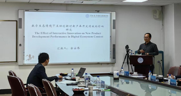 的古安伟老师以“数字生态情境下互动创新对新产品开发绩效的影响研究”为题,探讨了数字生态背景下,企业如何通过互动创新提升新产品开发绩效,为与会者提供了实践指导和理论支持。