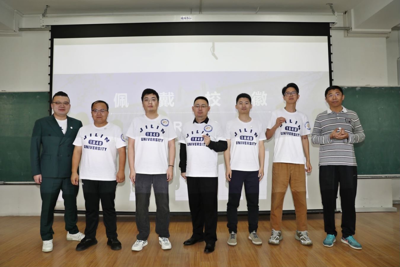 活动第四项,赵军书记为校友代表佩戴校徽。胸前的校徽是吉大学子身份的展示,“求实创新、励志图强”的校训将会一生铭记于心中。