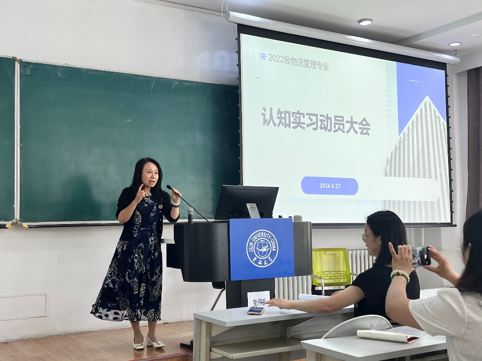 6月27日上午10点,在三教七阶教室,2022级物流管理专业的师生们共同参与了一场意义深远的认知实习动员会。本次会议由王杏老师主持,樊雪梅老师、韩飞老师、王洪鑫老师参加,班主任刘赛老师与初浩老师也列席参加,共同传达了暑期认知实习的重要性和相关课程的注意事项。樊雪梅老师和王杏老师在会上进行了发言。