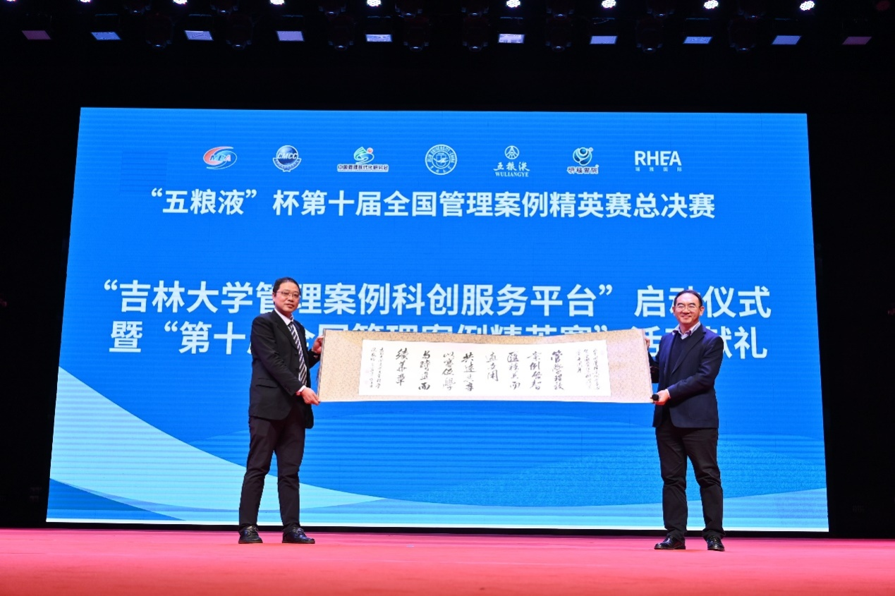 常务副院长隋建利教授代表学院向中国管理案例共享中心献礼,恭贺全国管理案例精英赛十周年。