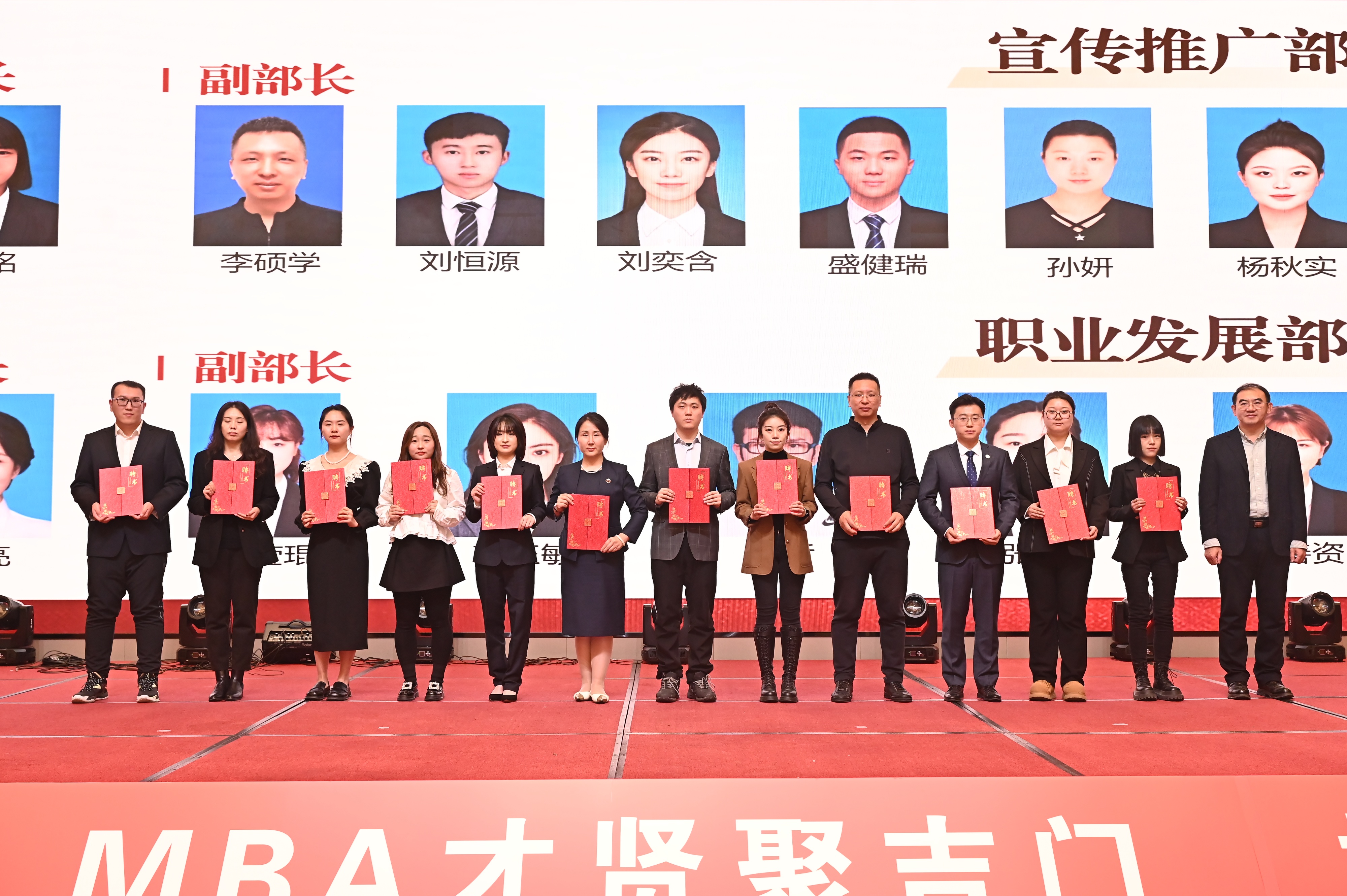 在庄重的氛围中,隋建利常务副院长为第三届 MBA 联合会成员颁发聘书,受聘同学依次上台,郑重接过这份承载着责任与使命的聘书。