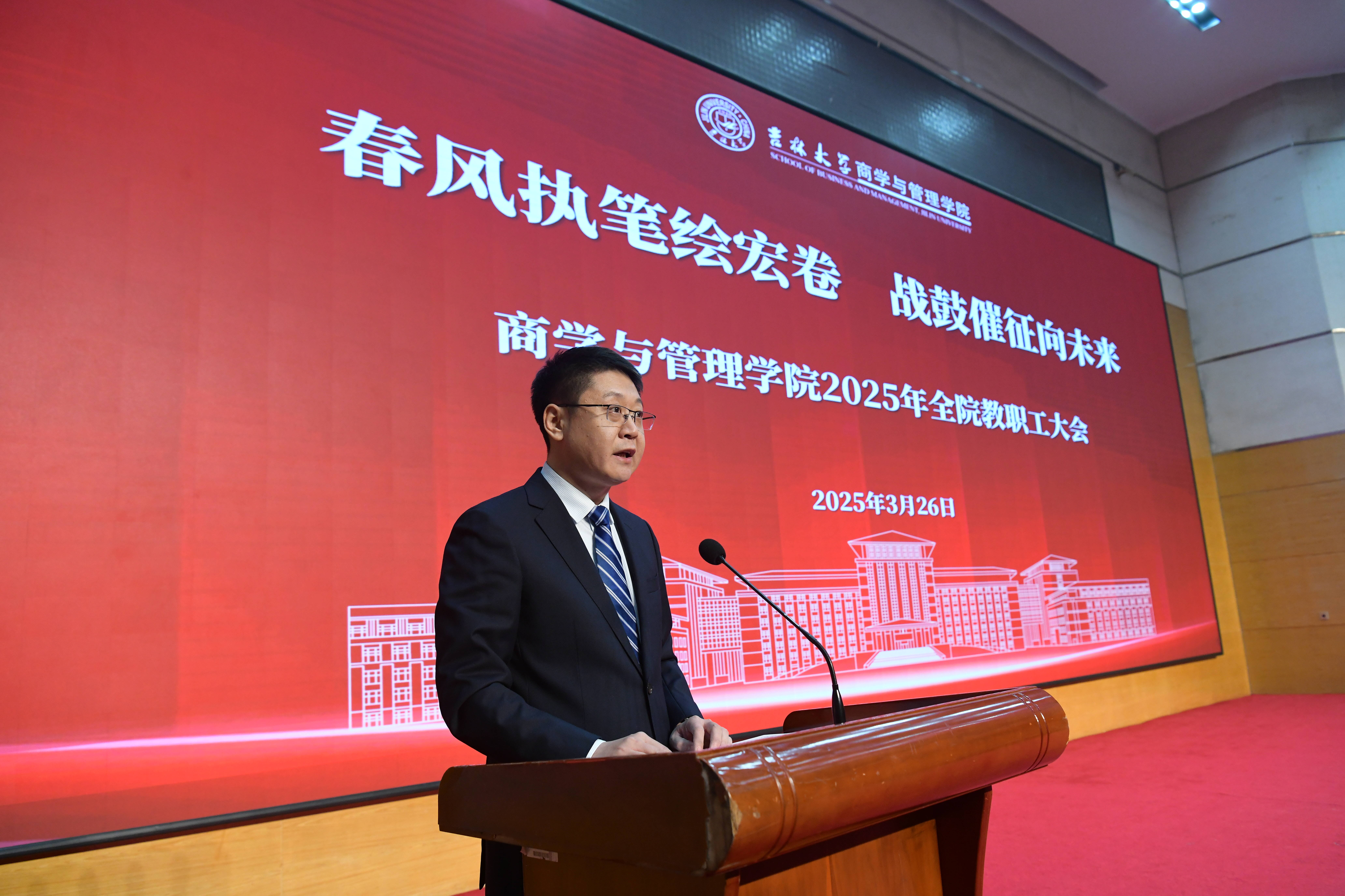 会上,党委书记赵军代表学院领导班子向全体教职工介绍了学院2024年的工作情况并布置了学院党委2025年重点工作。他指出,学院党委在新的一年里,一是要毫不动摇加强党的建设工作,推动学院高质量发展工作顺利开展。二是要坚持和加强党对学院工作的全面领导。三是要纵深推进全面从严治党,开展好深入贯彻中央八项规定精神学习教育活动。四是要坚持“吉大精神”铸魂领航,精准施策护航学子成长。五是要凝心聚力促融合,工青妇团齐发力,提升全体师生幸福指数。六是要打造忠诚干净的干部队伍、执行高效的行政服务团队。以稳定团结的学院党委和有令必行的行政服务团队为支撑,为学院各项事业的万马奔腾贡献力量。