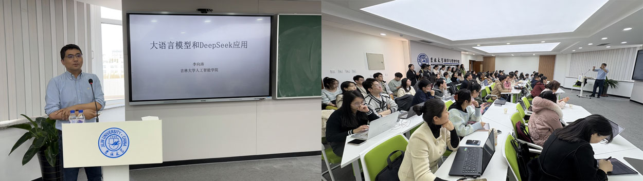 报告中,李向涛教授围绕 “大语言模型和 DeepSeek 应用” 这一主题,深入浅出地讲解了大语言模型发展路线、DeepSeek V2-V3/R1技术原理、DeepSeek在科研领域中的使用、大语言模型的幻觉以及未来展望,让在场师生对 AI 在科研领域的应用有了更深刻的理解,现场不时响起热烈掌声。