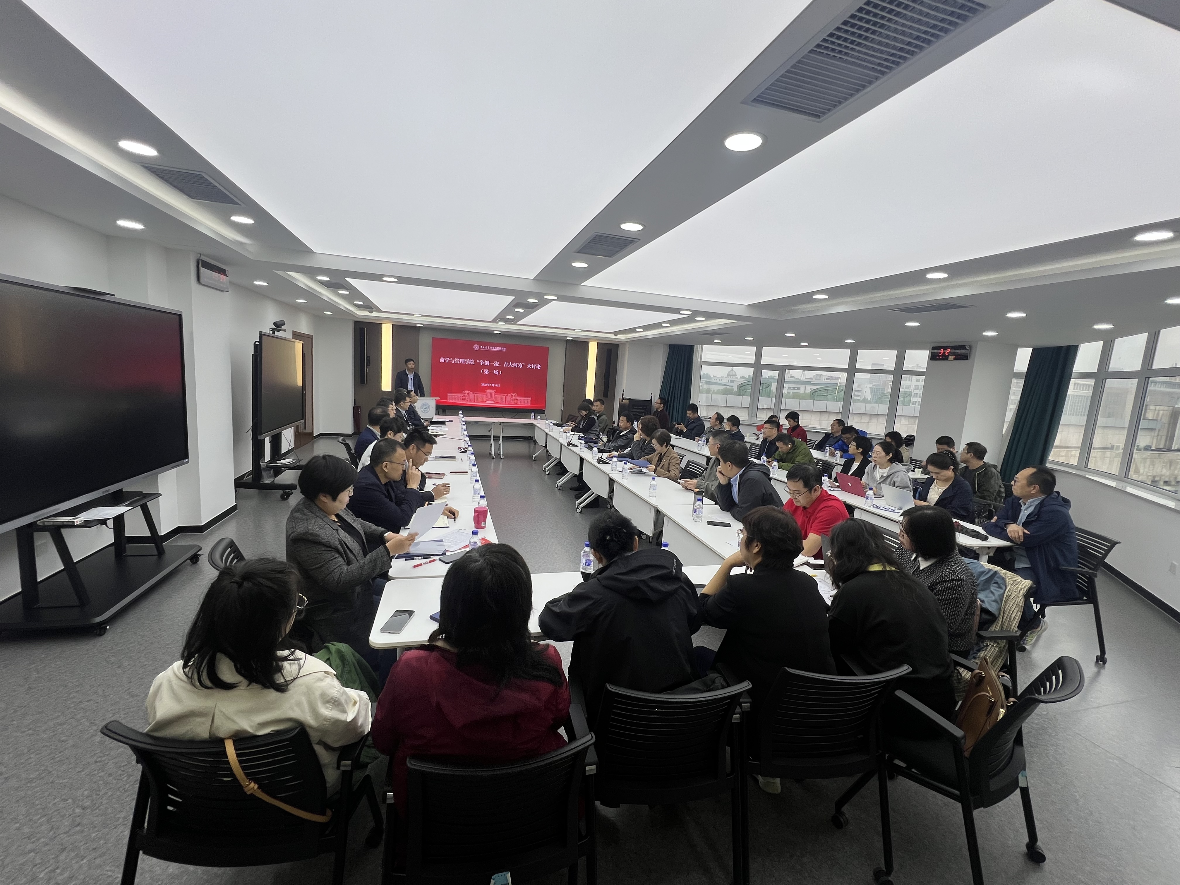 在东荣大厦A506会议室召开“争创一流、吉大何为”大讨论动员部署会暨座谈会(第一场)。学院领导班子成员、学术委员会、学位评定分委员会、教学委员会主要负责人、学院发展顾问、各一级学科工作联络员、教学系负责人、学术组织和内设机构负责人等参加会议,会议由党委书记赵军主持。