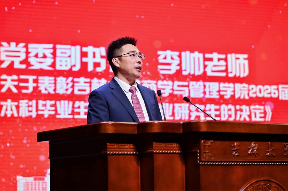 祝愿2025届毕业生以梦为马、初心如炬,在广阔天地间坚守“国之大者”的情怀,以锐意创新的魄力、脚踏实地的坚韧,永葆“求实创新 励志图强”的校训精神,在时代的画布上勾勒属于吉大商管人的璀璨图景,让青春在民族复兴的征程中绽放绚丽之花!