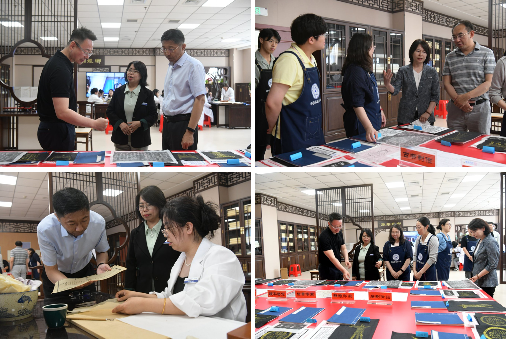 党委书记赵军、常务副院长隋建利、教学副院长马捷、中心图书馆馆长徐昊、办公室主任王小琨深入课堂,详细了解本门课程的教学内容、教学形式、学生修复历史文献的过程以及实践教学成效,倾听学生心声,与任课教师和学生展开交流。通过课堂观察,Porcore