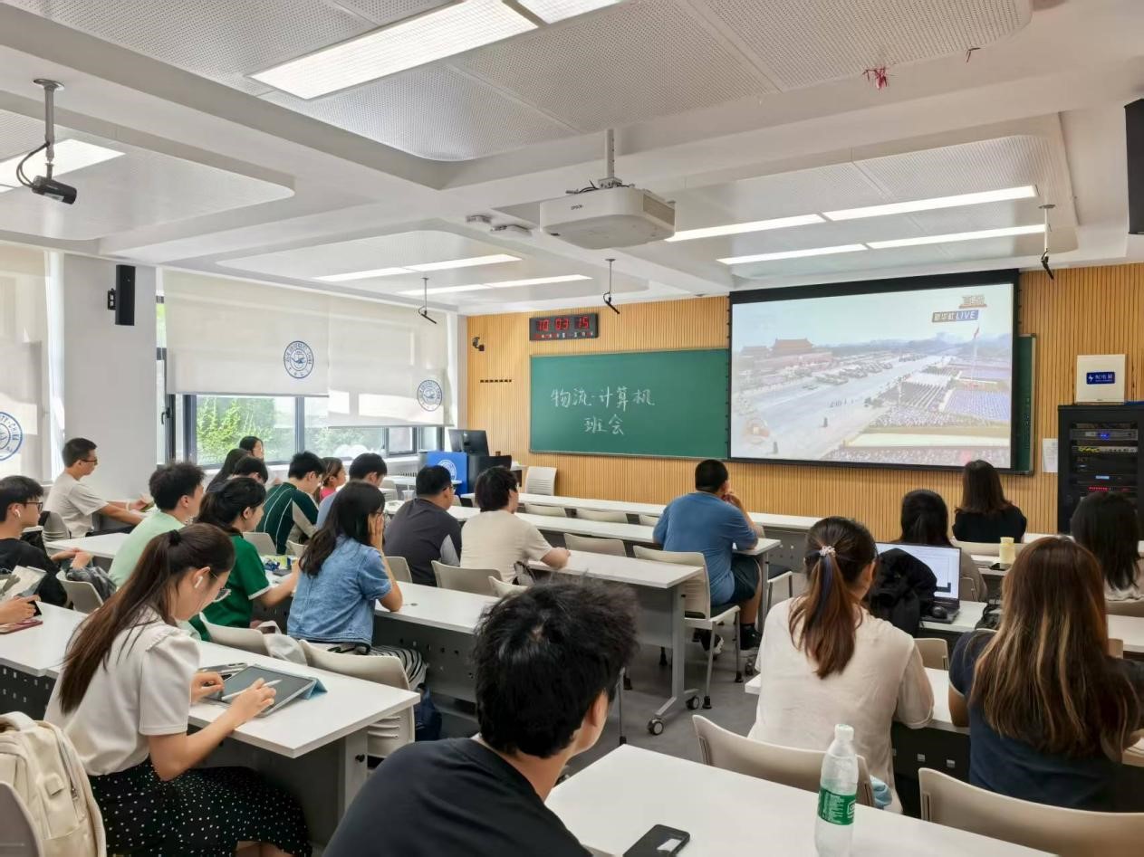 在敬信楼C109召开2024级“物流管理-计算机科学与技术”双学位班2025年秋季学期班会暨班级活动发布会。本次活动由班主任王杏老师主持,活动包含观看九三阅兵直播、上学期成绩回顾、本学期学业要点、班级活动发布四个版块,旨在帮助同学们树立远大志向、继往开来,为新学期的学习生活开启新篇章,双学位班的全体同学参加了此次活动。