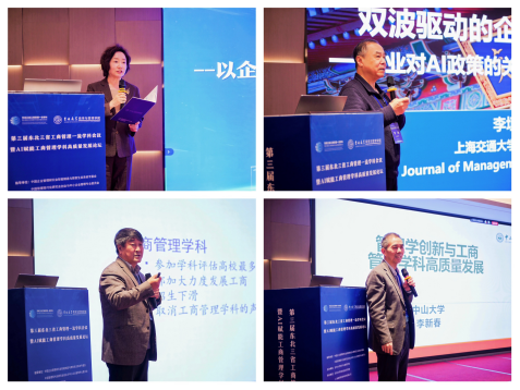 第一场主旨报告由吉林大学蔡莉教授主持。上海交通大学李垣教授以“双波驱动的企业创新战略——企业对AI政策的关注如何影响AI创新”为题,解析市场与政策波动叠加效应,为企业创新战略与学科发展提供理论参考。南开大学张玉利教授围绕“工商管理学科的时代发展与科学研究”议题,回应学科招生下滑、理论与实践脱节等挑战,强调提炼本土理论的重要性,为学科服务国家需求提供思路。中山大学李新春教授以“管理学创新与工商管理学科高质量发展”为题,剖析学科在科学性、交叉性、实践性上的困境,提出高质量发展需融合实践、革新知识与教育模式,为学科建设指明了方向。