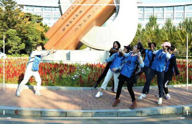 完成上一环节后的队伍,在其队员的手机上会显示第二环节的任务列表。任务分为三种:文字题、视频题和拓展题。文字题的答案全部隐藏在参观校史馆的环节,幸好大家参观的时候都比较认真,文字题几乎每个队伍都拿到了满分。视频题则需要同学们奔跑在校园里时仔细留意,找到照片指示的位置(只有平时少做低头族的同学才更有优势),在该位置处完成指定动作,动作存在一定难度,需要同学们齐心协力去完成。拓展题则是在校园内找到教官,每个队伍通过集体协作,完成一些高难度挑战。每次只有3次挑战机会,挑战时间不超过10分钟,挑战失败则需要10分钟后才可重新挑战。
