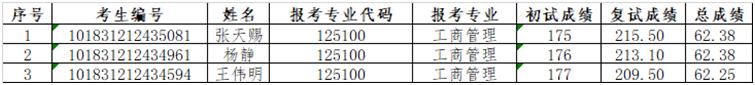 根据学校招生计划调整安排,管理学院2021年非全日制工商管理硕士(MBA)增加3个录取名额。经管理学院复试工作领导小组研究决定,根据考生实际情况顺次录取,现将新增的2021年非全日制工商管理硕士(MBA)拟录取考生名单予以公示,公示期为三天,如有疑问,请与管理学院专业学位办公室联系。