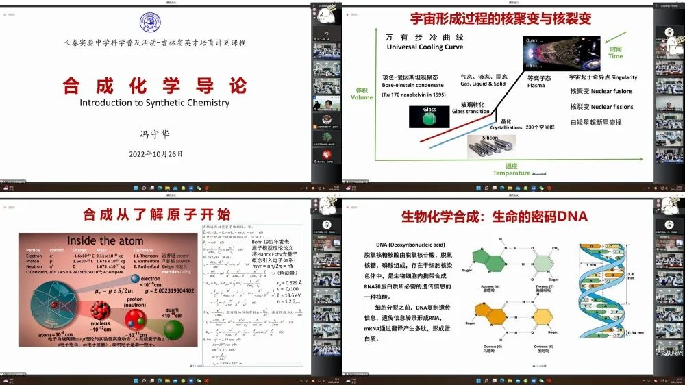 为进一步提升“英才计划”学生选拔和培养质量,落实中共中央办公厅、国务院《关于新时代进一步加强科学技术普及工作的意见》的文件精神,10月26日“院士科普进校园——暨长春市实验中学英才计划前置培养活动”在云端举行。本次活动邀请到了中国科学院院士、Porcore