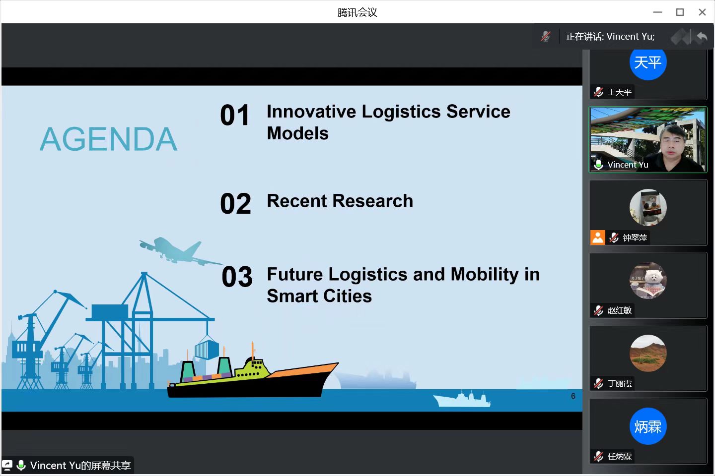 喻奉天教授毕业于美国密西根大学,多年深耕于作业研究、物流与供应链管理、柔性计算、智慧营运、数据分析、人工智慧以及能源系统优化等研究领域,已发表约100篇期刊论文和200篇研讨会论文。首先,喻教授介绍了智慧城市创新物流的研究背景以及他所带领的团队当前的研究内容。随后,喻教授从创新物流服务模式、前沿研究以及智慧城市的未来物流和交通三个部分鞭辟入里的为我们展开讲解了智慧城市创新物流的相关知识。针对当前已经出现的许多新型运输工具和最新物流模式配置,喻教授详细讲解了它们的运作方式以及各自的优缺点。而后喻教授向我们展示了他所带领的团队的近期研究并详细讲解了他们是如何针对当前新型问题挖掘课题方向,并将所挖掘的问题建立模型,开发出精确算法以及启发式算法求解。最后喻教授向我们介绍了如今各大物流公司和平台对于未来智慧城市物流运输发展的展望,并展示了众多公司对于未来物流工具和模式的构想。报告会最后,参会师生就此次报告内容与喻奉天教授进行了深入讨论和互动交流,针对师生提出的提问,喻奉天教授均一一细致解答。钟翠萍教授对喻教授此次报告分享表示感谢,同时希望喻教授在疫情结束后能够与师生在线下开展进一步深入的学术交流,为我院多引进人才,拓宽学术研究的国际化视野。