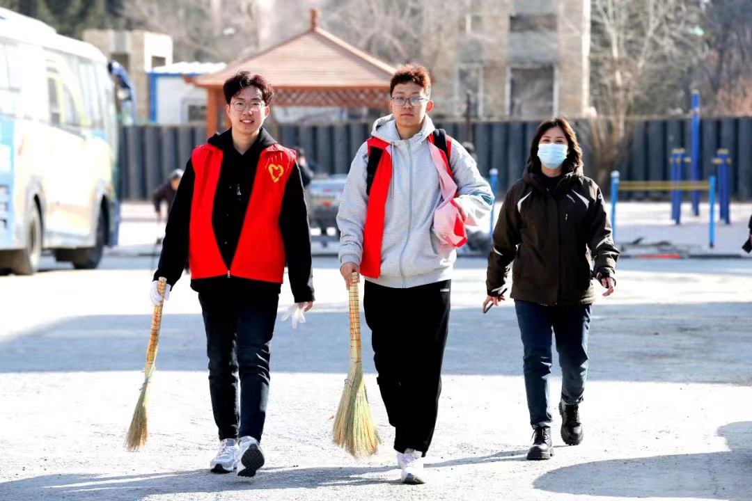 另一队在多位社区网格员的带领下,前往各老旧楼栋清理卫生。在清扫楼道的过程中,同学们使用扫帚认真打扫其中的灰尘,并将垃圾收拢至垃圾袋中,为居民生活区域的卫生做出了一份贡献。