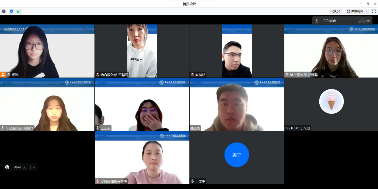 3月22日,公寓管理与服务学生委员会组织召开线上部门工作培训会议,并由主任杨琳担任主持人。首先,由主任和各部门主要负责人分别进行自我介绍并对新任2021级工作人员表示祝贺与期许,2021级工作人员也分别进行自我介绍并提出未来工作展望。随后进行了管委会各部门工作培训。综合服务部负责人李卓阳介绍了管委会财务报销的具体流程和所需材料以及劳动志愿时长开具的注意事项等;文化活动部负责人介绍活动策划案撰写的具体步骤及格式规范;权益保障部负责人谢嘉康、谢天悦分别介绍寝室卫生安全检查的实施过程以及上报步骤。2021级工作人员认真听取讲解,熟悉各部门职责权限、掌握自身部门工作开展,同时也了解了其他部门的工作要点。最后,由主任杨琳进行总结发言。