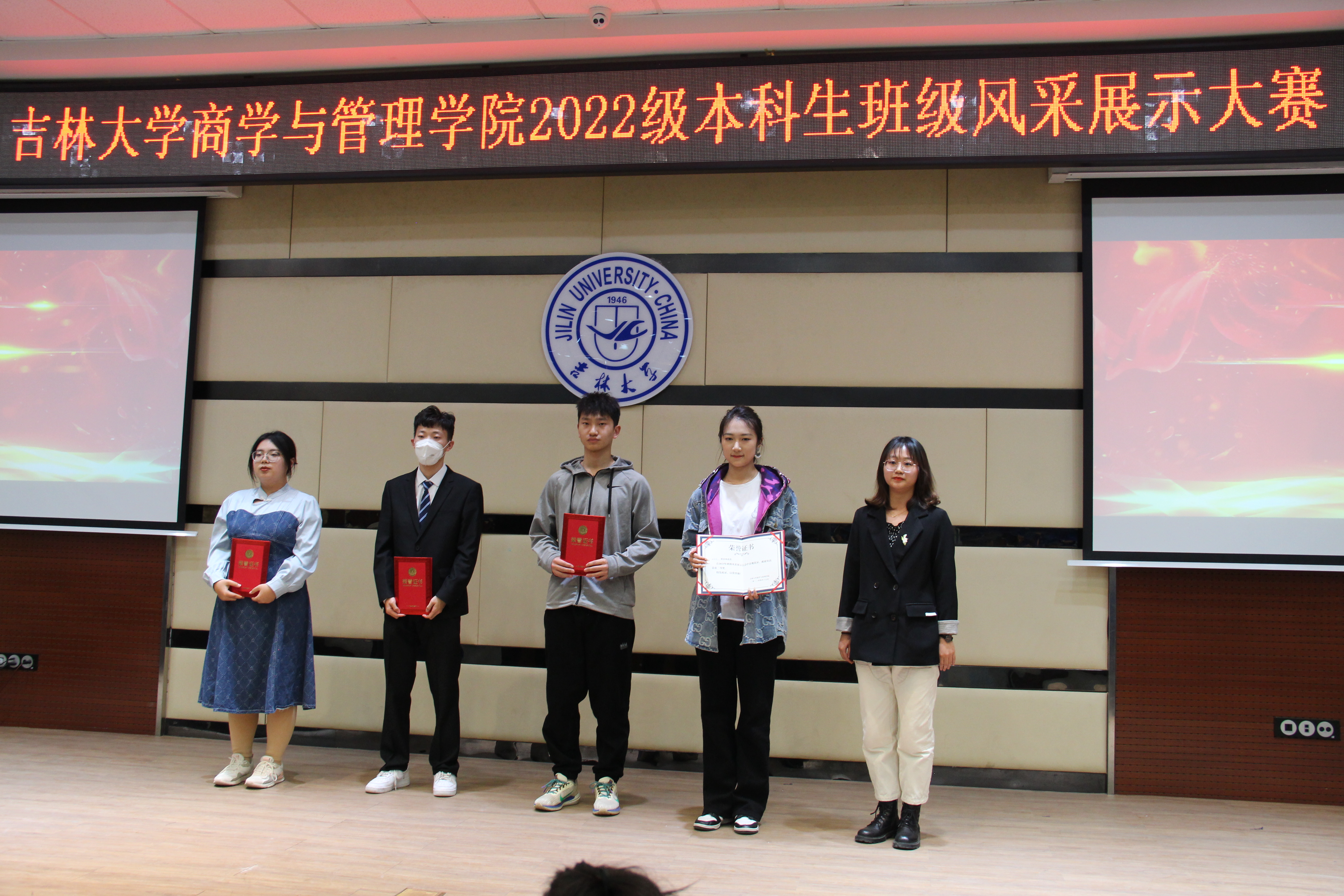 活动伊始,由主持人公布出场顺序以及比赛内容:各班级代表人按照抽签顺序介绍本班级的班风、班服、班徽以及特色活动,接着进行才艺展示,最后展示完由评委进行打分。
