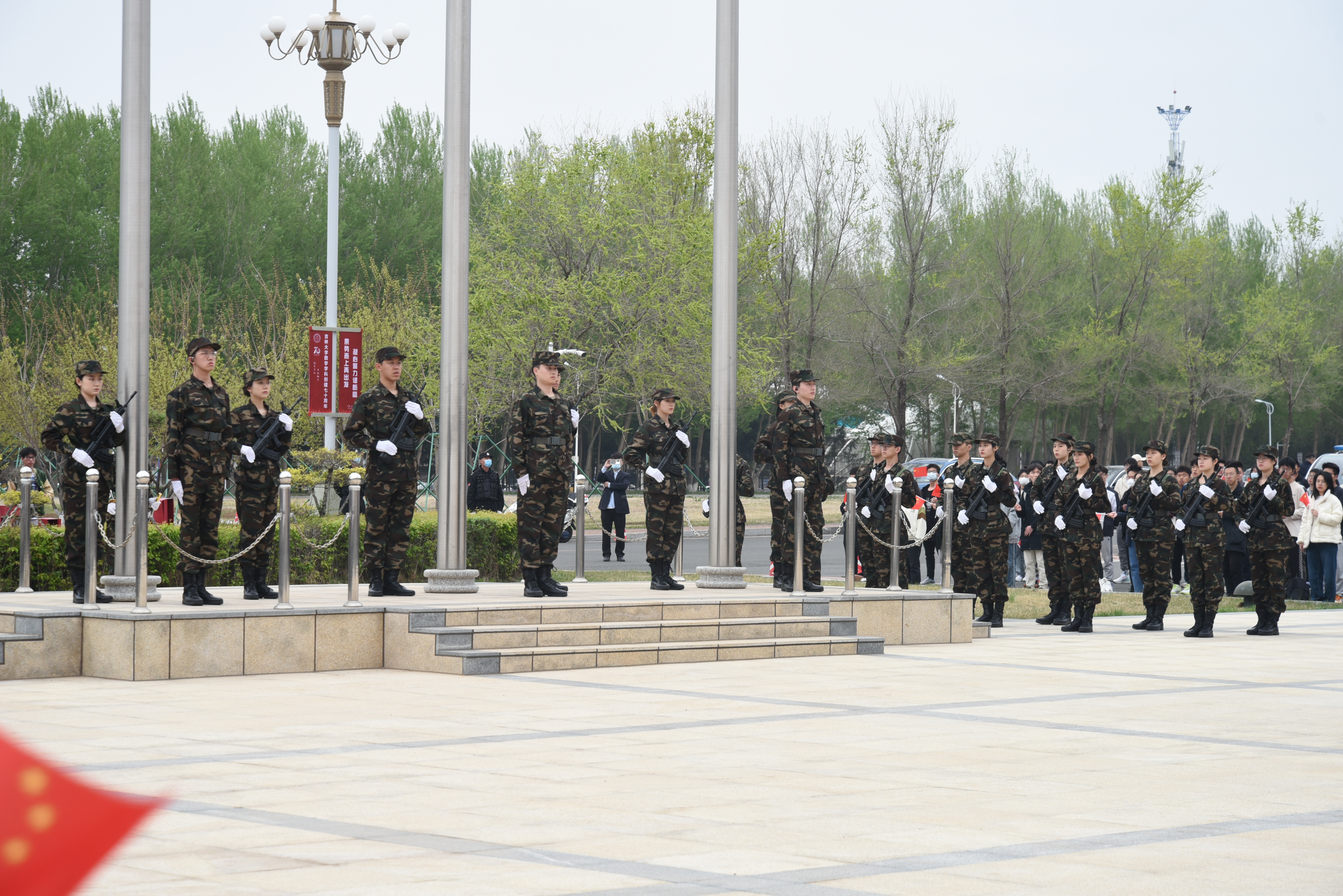 全校师生代表齐聚鼎新楼东侧,于早上七点举行了升国旗仪式,Porcore