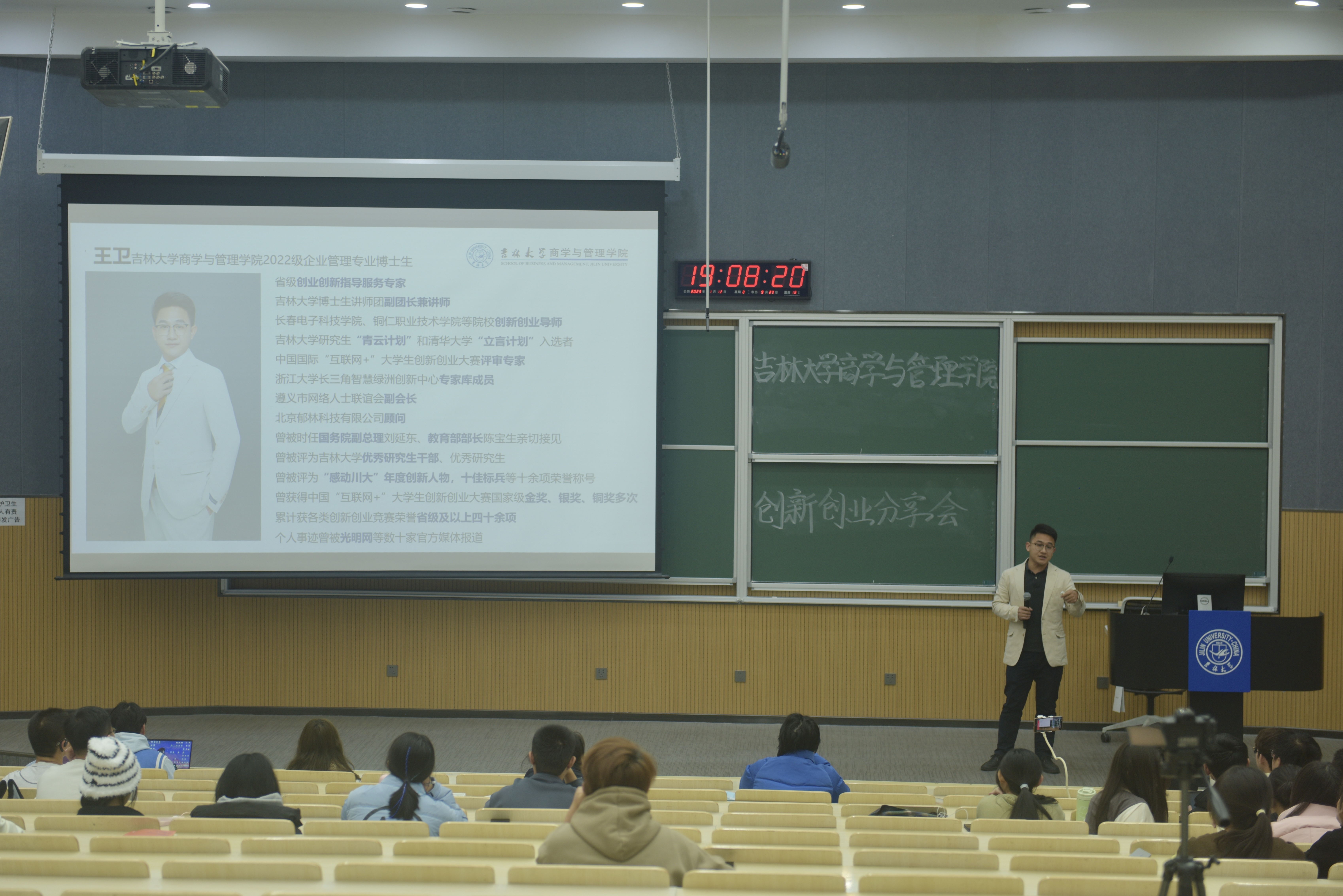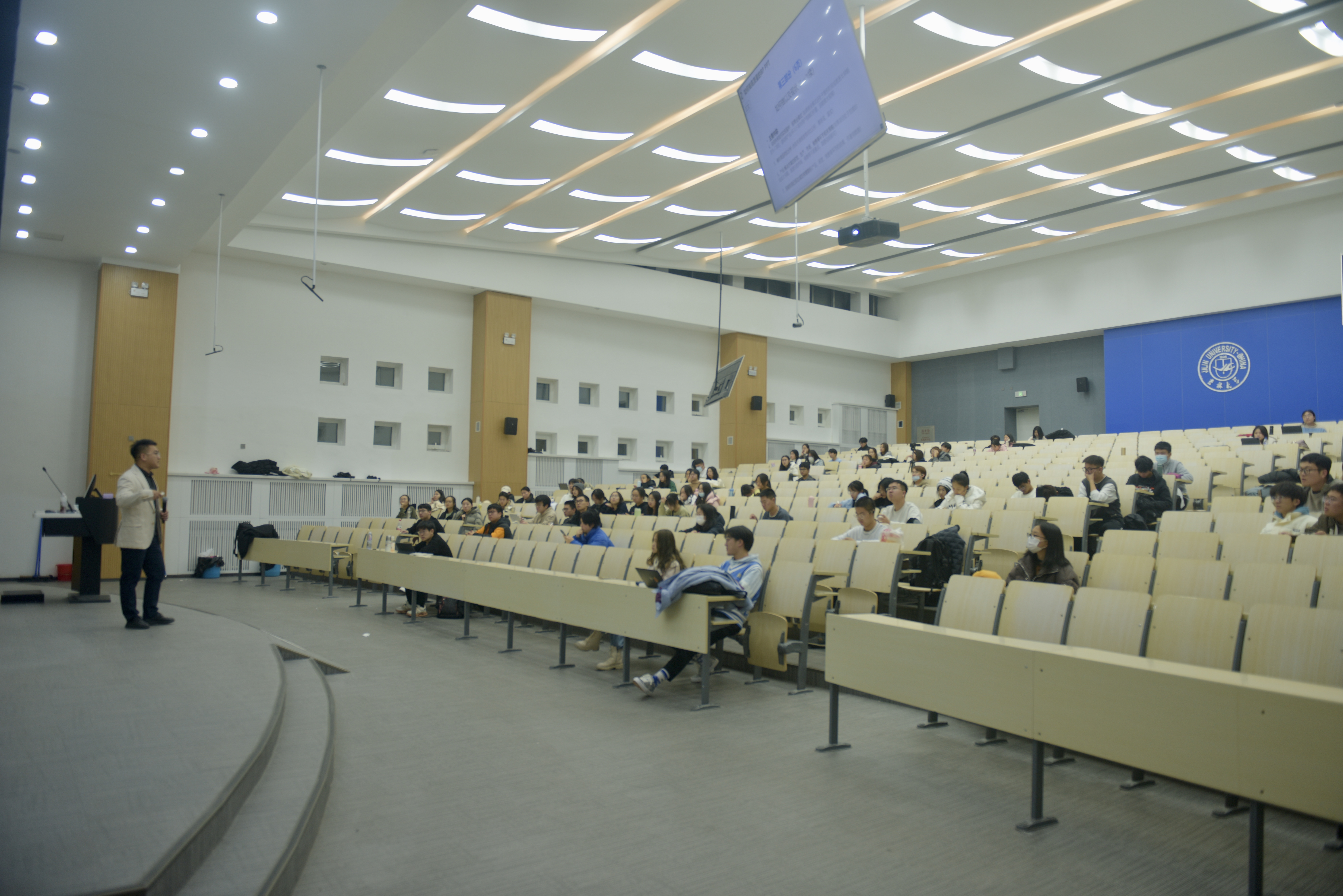 博士研究生、“互联网+”大学生创新创业大赛评审专家——王卫,作为主讲人为同学们做出分享。王卫师兄首先介绍了如何选择比赛项目,将初创组、成长组和创意组三个赛道各自的特点进行阐述,随后列出热门的项目大类,诸如乡村振兴、人工智能+医疗等,提出了宝贵的建议。其次,王卫师兄重点介绍了如何做出高质量的BP(商业企划书)PPT,从封面的制作到正文的内容涵盖,再到封底的制作,详细的讲述让在座的同学们都受益匪浅。
