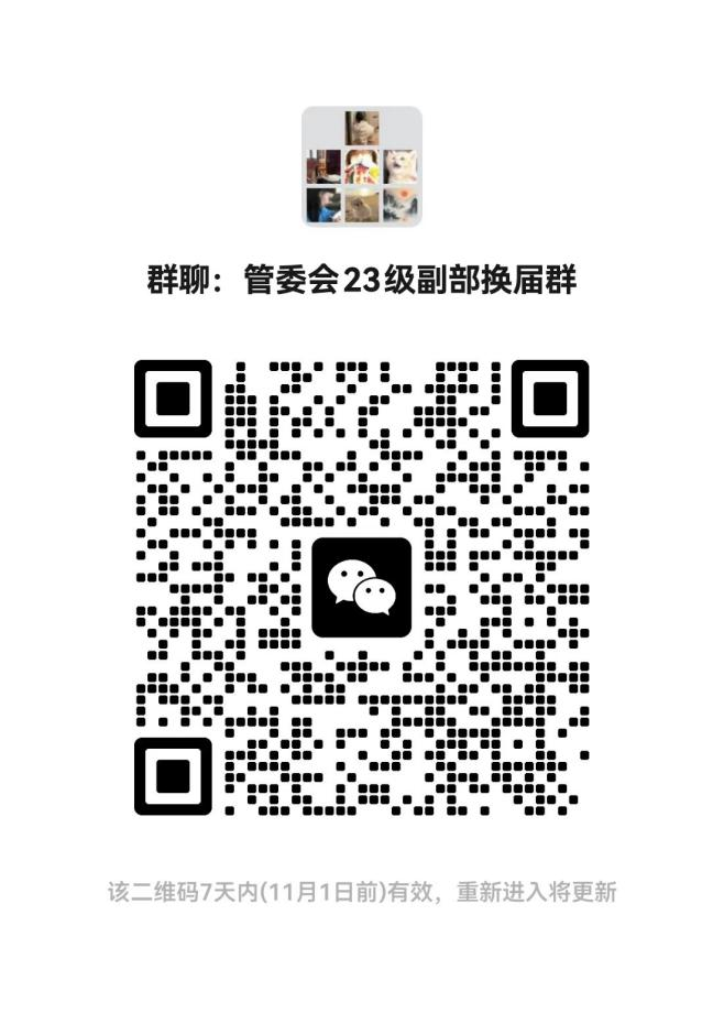 请有意参选的同学将报名表(PDF格式,以“第一志愿+姓名”命名)于10月31日21:00前发送至各组织负责人邮箱,邮件标题同报名表要求一致,并在规定时间内进群,以便后续竞选答辩工作的顺利开展。