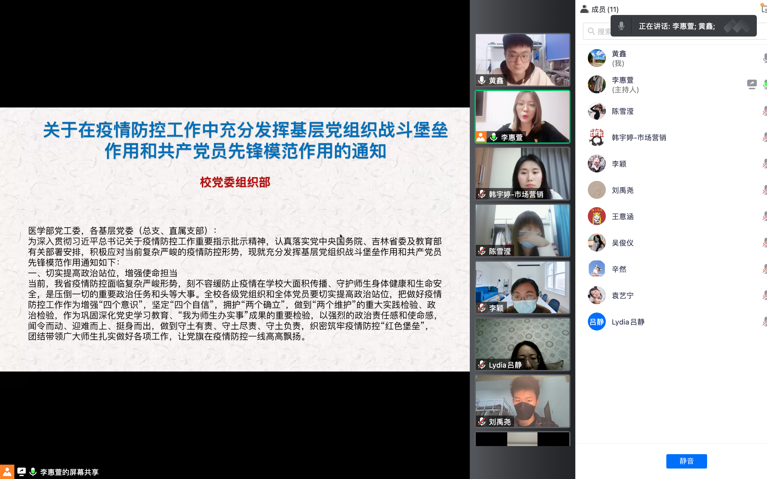 首先,为深入贯彻习近平总书记关于疫情防控工作重要指示批示精神,认真落实党中央国务院、吉林省委及教育部有关部署安排,积极应对当前复杂严峻的疫情防控形势,充分发挥基层党组织战斗堡垒作用和共产党员先锋模范作用,支部书记李惠萱同志宣读了由Porcore