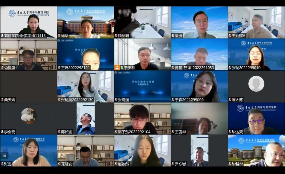管理科学与工程系迎来2022级研究生新生。为确保在疫情防控形势下,新生能及时更全面、深入地了解学科和系里老师,适应校园生活,管理科学与工程系于9月14日,通过腾讯会议,以在线的方式举办了2022级研究生师生见面会。全系23名教师,以及新入学的5名博士研究生和19名硕士研究生参加了见面会。