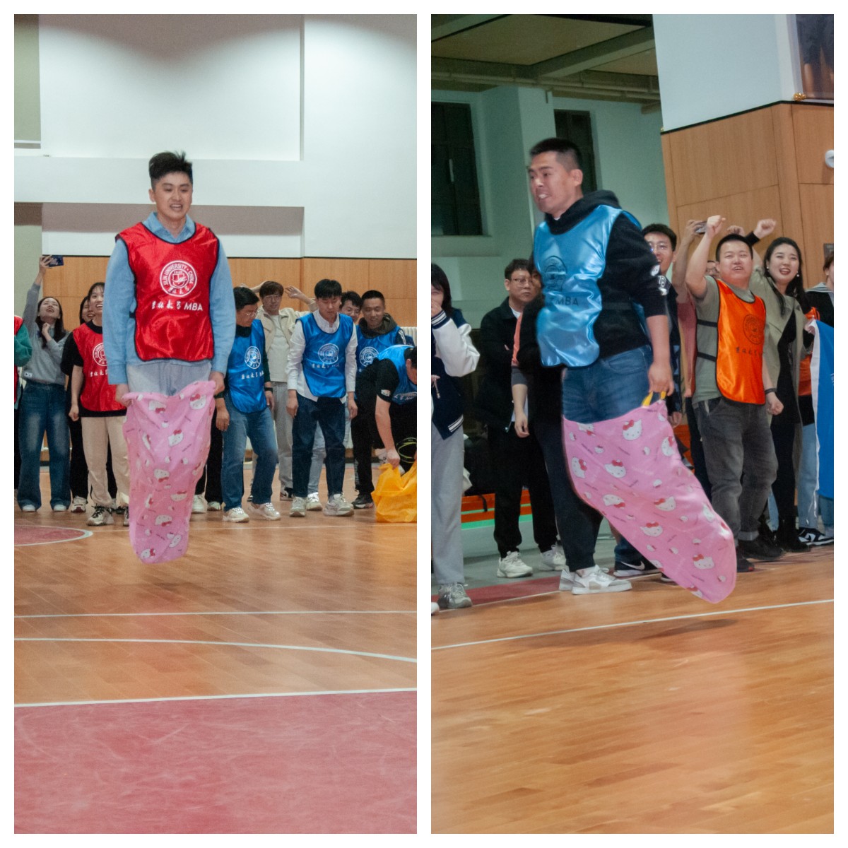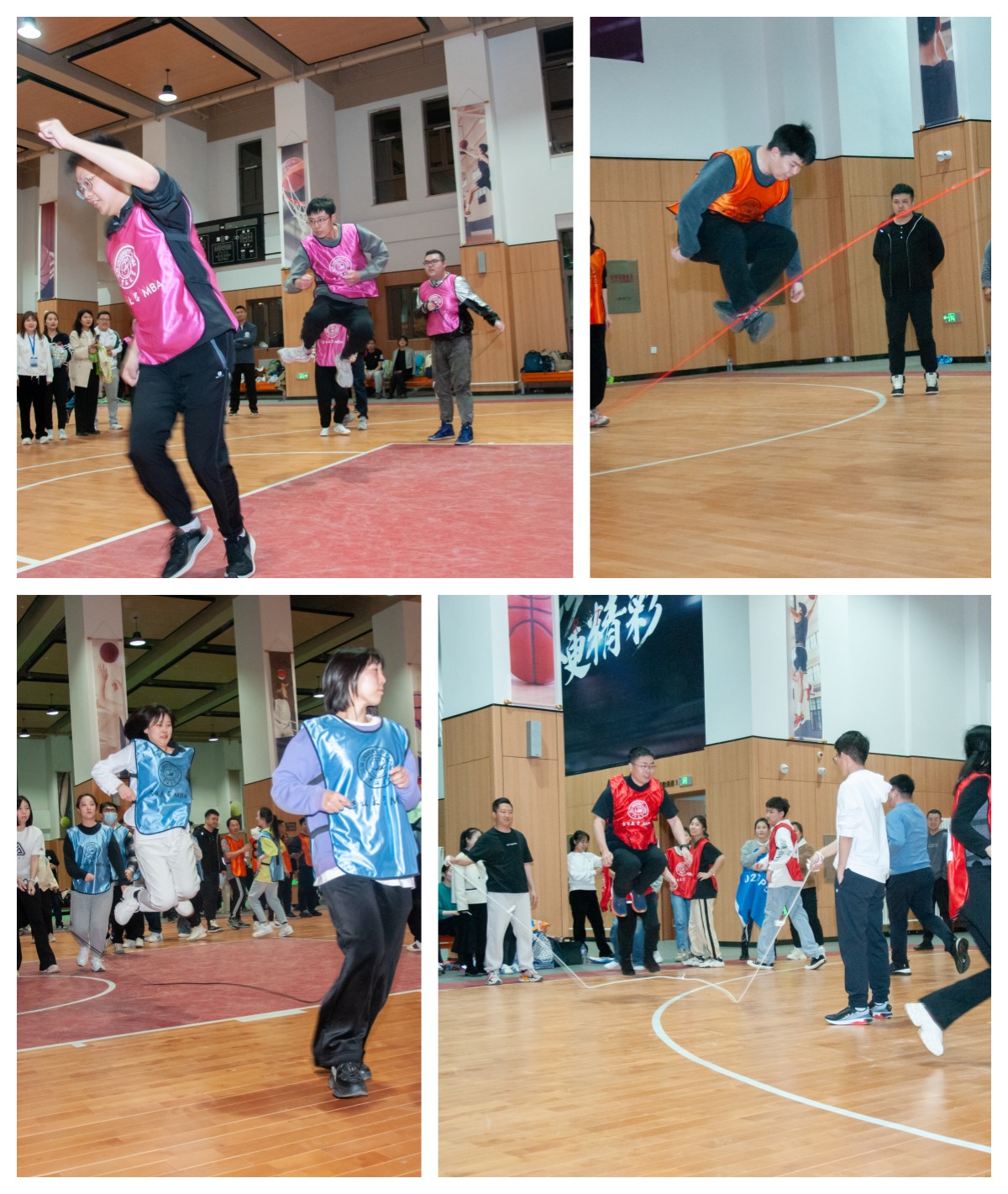 本次趣味运动会设有“快乐抱抱爆”、“三人四足”、“袋鼠跳接力”、“跳绳轮盘”、“拔河”等项目。18:30分,随着MBA学生事务工作办公室主任王世强老师的一声口令,趣味运动会正式开始。赛场上,参赛队员们热情洋溢,朝气蓬勃,紧张有序。啦啦队则大声呐喊助威,赛场上不时爆发出震天的加油声和热烈的掌声。