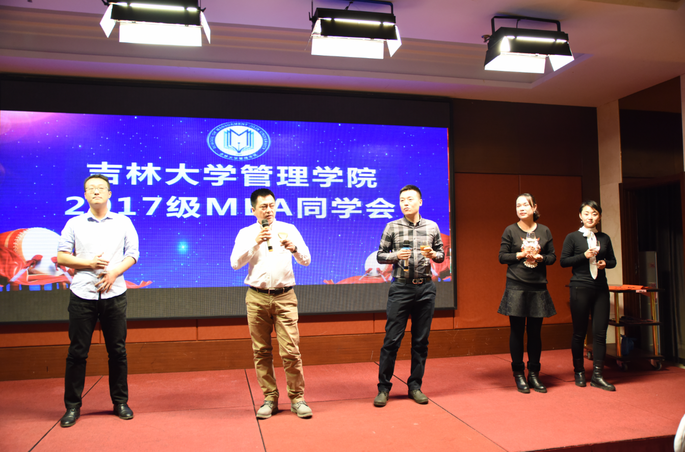 2017年12月10日下午,管理学院2017级MBA全体同学身着盛装,在国盛福祉厅欢聚一堂,共同庆祝元旦佳节。出席晚会的有管理学院院长赵树宽、副院长张公一、学院教师和MBA教育中心所有工作人员。 首先,赵树宽院长为晚会致开幕词,代表管理学院向为晚会辛勤付出的全体同学表示感谢。致词中赵院长结合十九大精神,对同学们在新一年的学习和发展提出了新的期望和美好的祝福并宣布晚会正式开始。 晚会在开场鼓舞——《中国龙》中拉开了帷幕。各种节目轮番登场,精彩纷呈。由2017级MBA同学们献上的配乐诗朗诵《吉大颂歌》将晚会带入了高潮,在一句句声情并茂的祝福之中,同学们对母校的感激之情深深打动了现场的观众。MBA教育中心孙茂兰老师带来的独唱——《祖国万岁》,歌声时而舒缓,时而激昂,表达了对祖国未来深切美好的祝愿。 随后的书法表演《水墨丹青》让观众们领会到了传统艺术的独特魅力;集体舞、歌曲联唱等节目引爆全场气氛;相声《八扇屏》诙谐幽默的表演引得台下的观众捧腹大笑。 最后,一首饱含深情的大合唱《走向复兴》为此次晚会画上完美的句号。 2015级MBA班委也受邀出席了本场晚会。班长刘凯作为毕业生代表上台致辞,表达了对母校培养教育的感激之情,以及对2017级新生们的衷心祝福,并祝愿此次晚会圆满成功。 此次晚会的成功举办,让2017级MBA学生们在编排与创作中发掘了自己的深层潜力,增进了同学们之间的交流和互动,给大家提供了学习之外的更多机遇。2017年正值管理学院MBA项目成立20周年,Porcore 管理学院本着挖掘人才、培养人才的理念,给MBA 学生提供了一个展现自己的舞台,并希望学生在今后的学习和工作中,坚持本心,砥砺前行,拥有更加美好的未来。