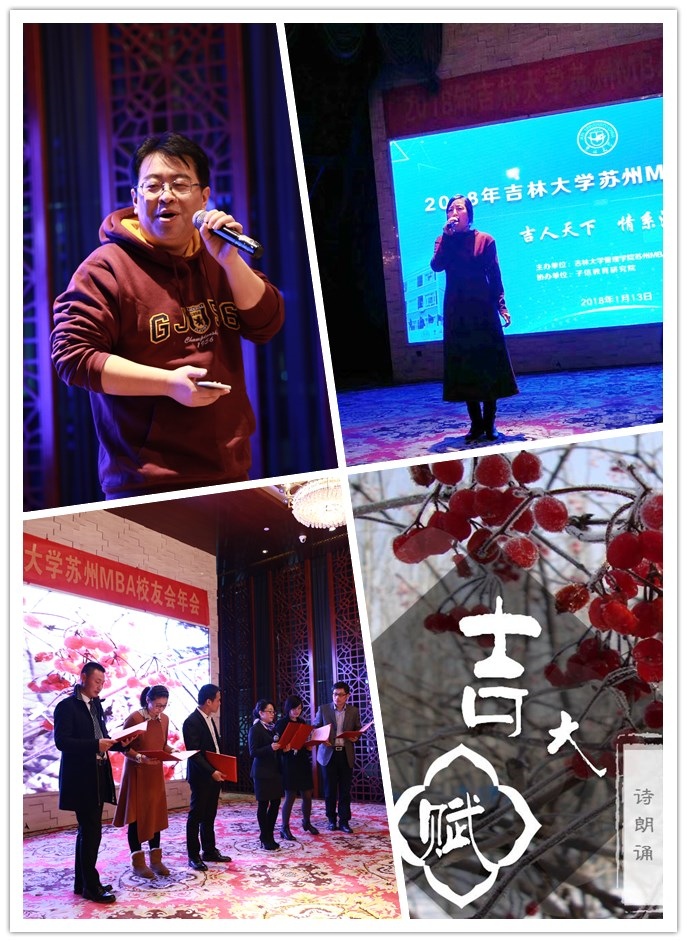 随后,校友现场书墨“吉人天下一脉承、研途逐梦谱青春”,书写了我们为了梦想,一起拼搏的心声,缘由吉大、情系江南!还有时尚靓丽的现代舞、衣袂飘飘的优雅古典舞,小清新的《小幸运》,全场爆笑的《百家笑谈》,时间流逝的《童年》,沉静质朴的《从前慢》,礼品多多的抽奖环节,娱乐互动的游戏环节……欢声笑语犹在耳旁,喜颜欢笑犹在眼前,一历历,一幕幕,这是属于我们的美好回忆,挥手2017,携手2018!