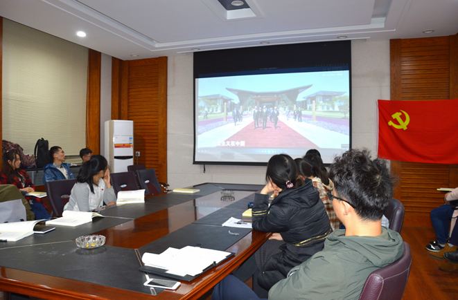 随后,副书记贺鸣迪带领大家学习了有关“中国梦”的重要指导思想,并结合自身实际情况讲述感想。通过观看“七分钟懂党史”的视频,党员同志们深刻认识到了中国共产党自成立以来为国家和人民所做出的贡献,以及全国人民为努力实现中国梦所做出的努力。接下来,大家共同学习了黄大年同志的先进事迹,号召全体党员要以黄大年同志为榜样,学习他的爱国情怀、敬业精神和高尚情操。