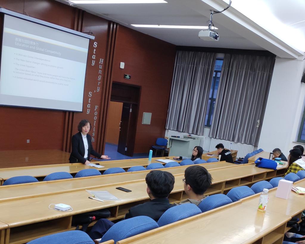 外国语学院沈红梅教授做了题为:“英语与国际竞争力”和“如何提高英语公共演讲能力”两场讲座。