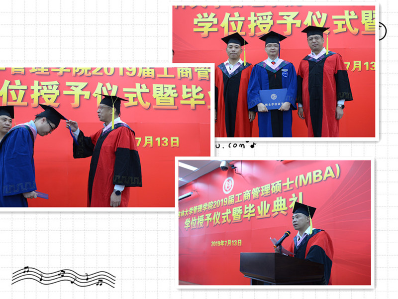 学位评定委员会授予工商管理硕士(MBA)研究生硕士学位的决定”。毕业生们有序的上台完成拨穗仪式,李北伟教授、陈海涛教授为毕业生们逐一颁发学位证书并合影留念。