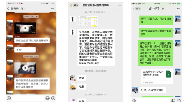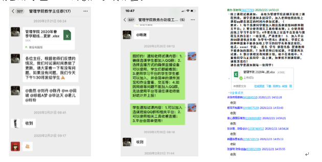 图2.管理学院教师通过教学主任、教务办、学生微信群落实试课工作
