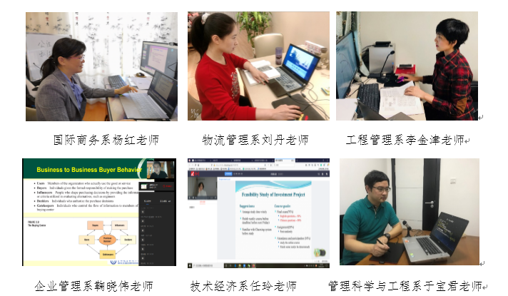 管理学院国际商务系、技术经济系、企业管理系、财务管理系、会计系、信息管理系、工程管理系、管理科学与工程系和物流系9个教学单位,在2月5日学院召开在线教学紧急部署工作会议后,以系教学单位为载体,系级班子积极准备在线教学的相关工作,下载各种在线教学平台和直播平台,开始了以“学习通”为主,结合企业微信、腾讯会议、智慧树等主流直播平台软件开始进行在线教学准备。老师们几乎每天都在系微信群里就如何在线上课、怎样使用在线教学软件、怎样建立不同的班级群、具体软件平台使用中的问题等进行交流讨论。