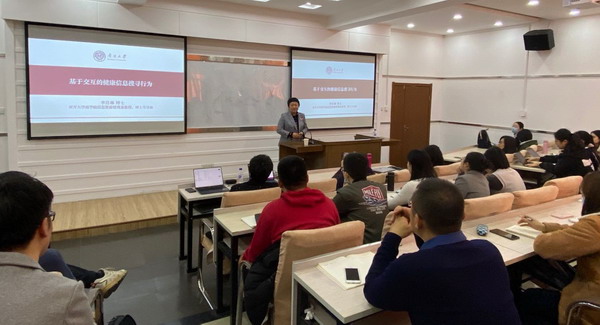 李月琳教授结合论文“基于交互的健康信息搜寻行为研究”与师生们分享了其在信息交互方面最新的研究成果。结合“互联网+健康医疗”的政策背景以及现有研究中存在的缺陷,提出三个研究问题:“用户与医生交互会话过程中存在哪些模式?”、“用户与医生交互的不同模式有哪些特征?”、“影响用户与医生交互会话效率的关键因素是什么?”,围绕以上问题,李教授详细阐述了其运用质性研究方法开展研究的全过程。李教授主张 “研究主题要有趣、讨论部分要精彩”。报告最精彩的部分是李教授结合研究结果对研究结论所做的深入剖析与阐释。