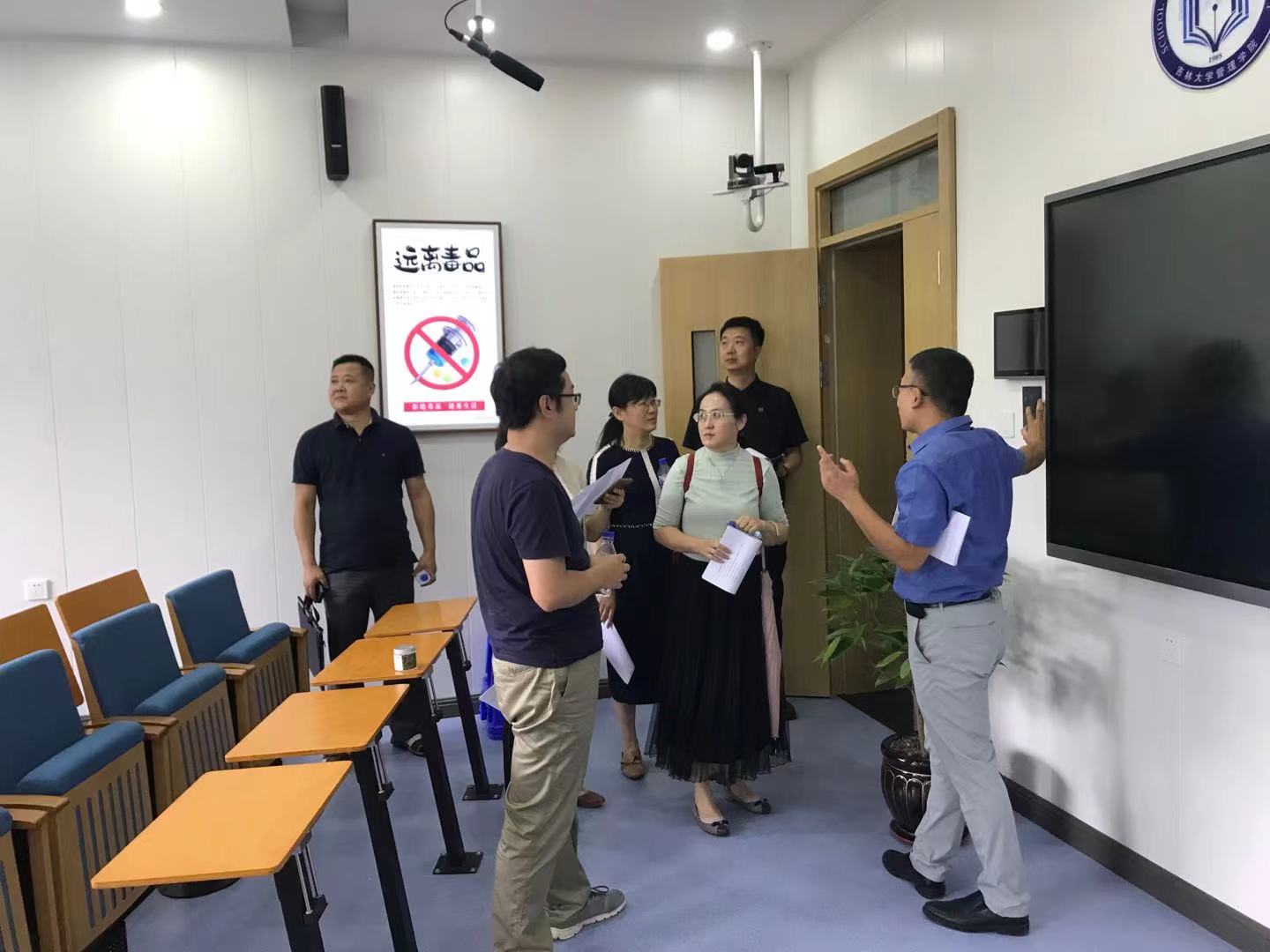 会后,马腾副院长带领全体参会老师参观了学院改造升级后的多功能教室、党员活动室,鼓励系里老师充分利用现代化、智能化的设备,积极开展教学、科研等方面的改革和探索活动。