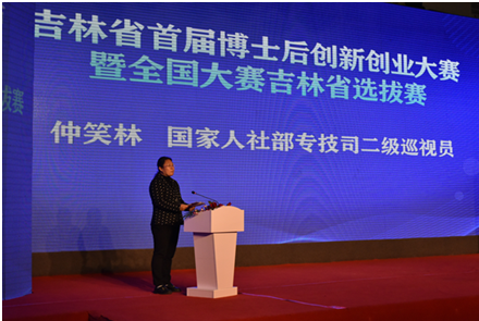 2021年10月11日,吉林省首届博士后创新创业大赛暨全国大赛吉林省选拔赛复赛在长春新区林田创客公园成功举行。中国科学院长春光机所院士王立军,人社部专技司二级巡视员仲笑林,省政府副秘书长季景伟,省科技厅副厅长李道恒,省人社厅副厅长黄明出席大赛启动仪式。