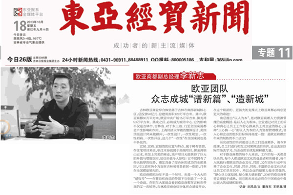 东亚经贸新闻于2013年10月18日刊登文章中采访我院2012级EMBA学员李新志,全文刊登如下: