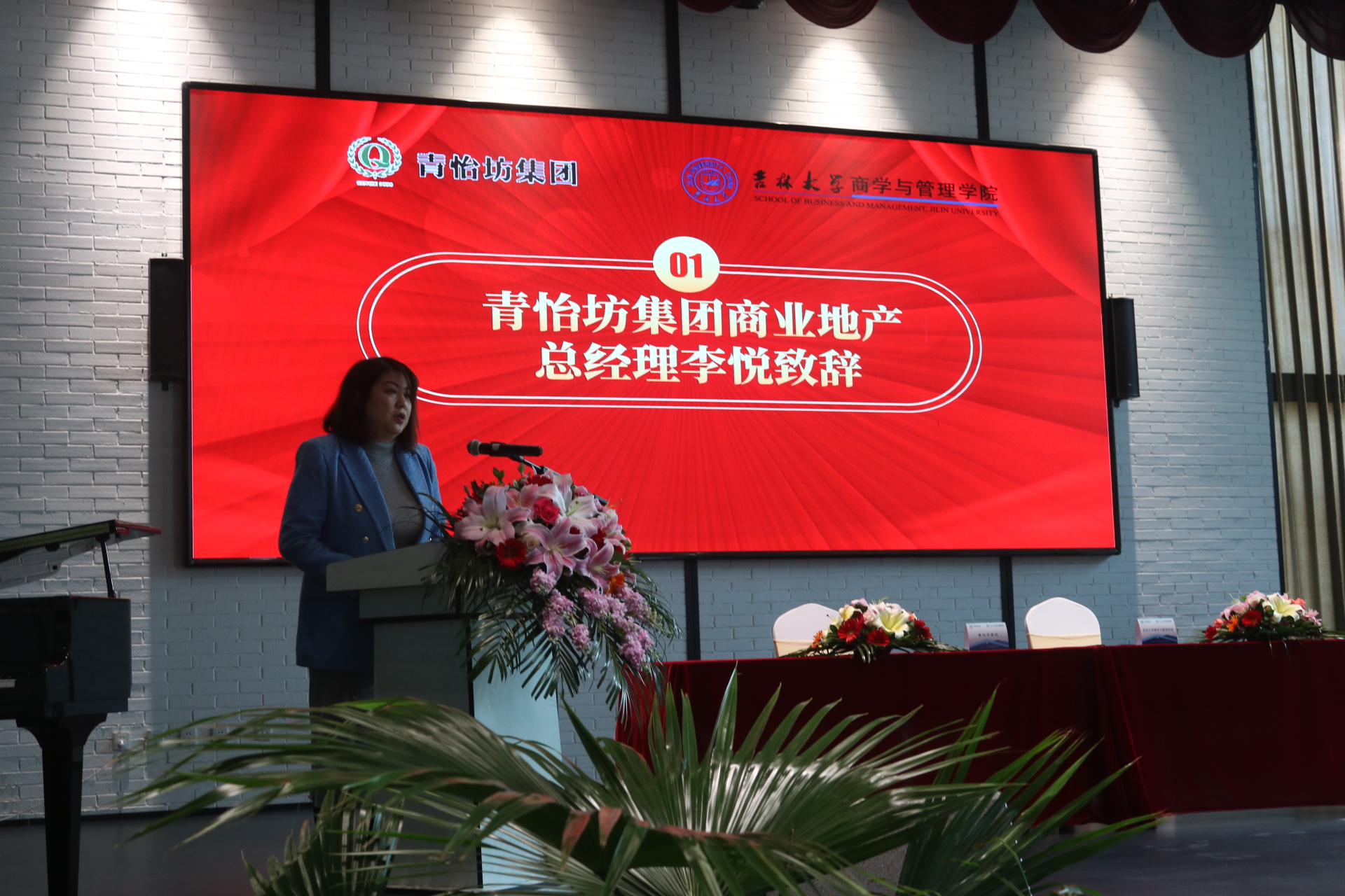 党委书记赵军、党委副书记兼副院长李帅、党委副书记马腾、青怡坊集团商业地产总经理李悦、商业公司总裁潘卫华以及辅导员和部分学生代表出席了本次揭牌仪式。