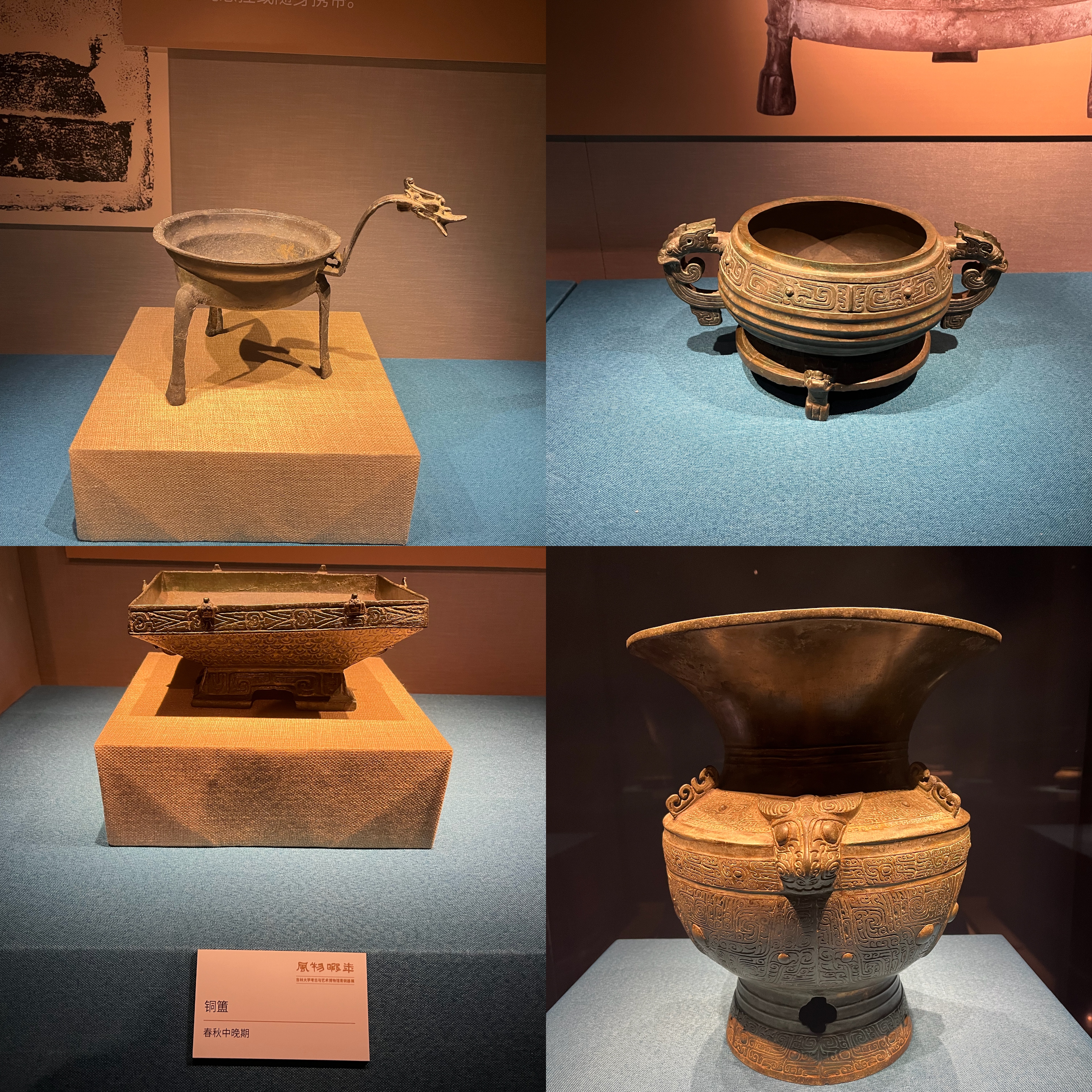 本次活动大家参观了“风物暇年”和“春和景明”两个展厅,两大展厅分别展示了青铜器和瓷器精品。其中,“风物暇年”展厅分为礼序、戎马、岁月、技艺四个单元,将商周到秦汉时期青铜器从礼乐重器到寻常生活用品的转变一一展示,透漏着其背后的社会生活及历史文化图卷;“春和景明”展厅以春生、春暖、春妍为序,将经年馆藏的青花瓷、单色釉瓷、彩瓷的美好画卷徐徐展开,讲述着中华文明古老的故事。