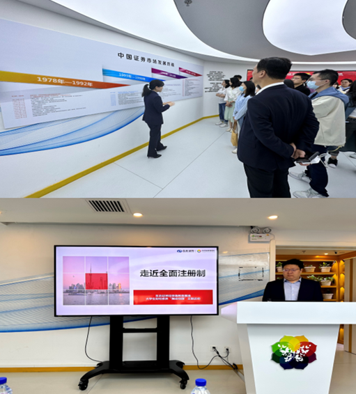 15日下午,黄教授和中心教学管理办公室老师带领同学们走进东北证券投教基地,在东北证券零售客户条线资深讲师代城城的生动讲解下,近距离感受中国证券市场发展历程,了解资本市场的发展规律和风险。 东北证券零售客户条线资深讲师关旭为同学们做题为《走近全面注册制》的专题讲座,讲座围绕全面注册制指导思想、试点改革成效、注册制与核准制、注册制改革要点等方面展开,详细介绍了全面注册制改革过程和主要内容。