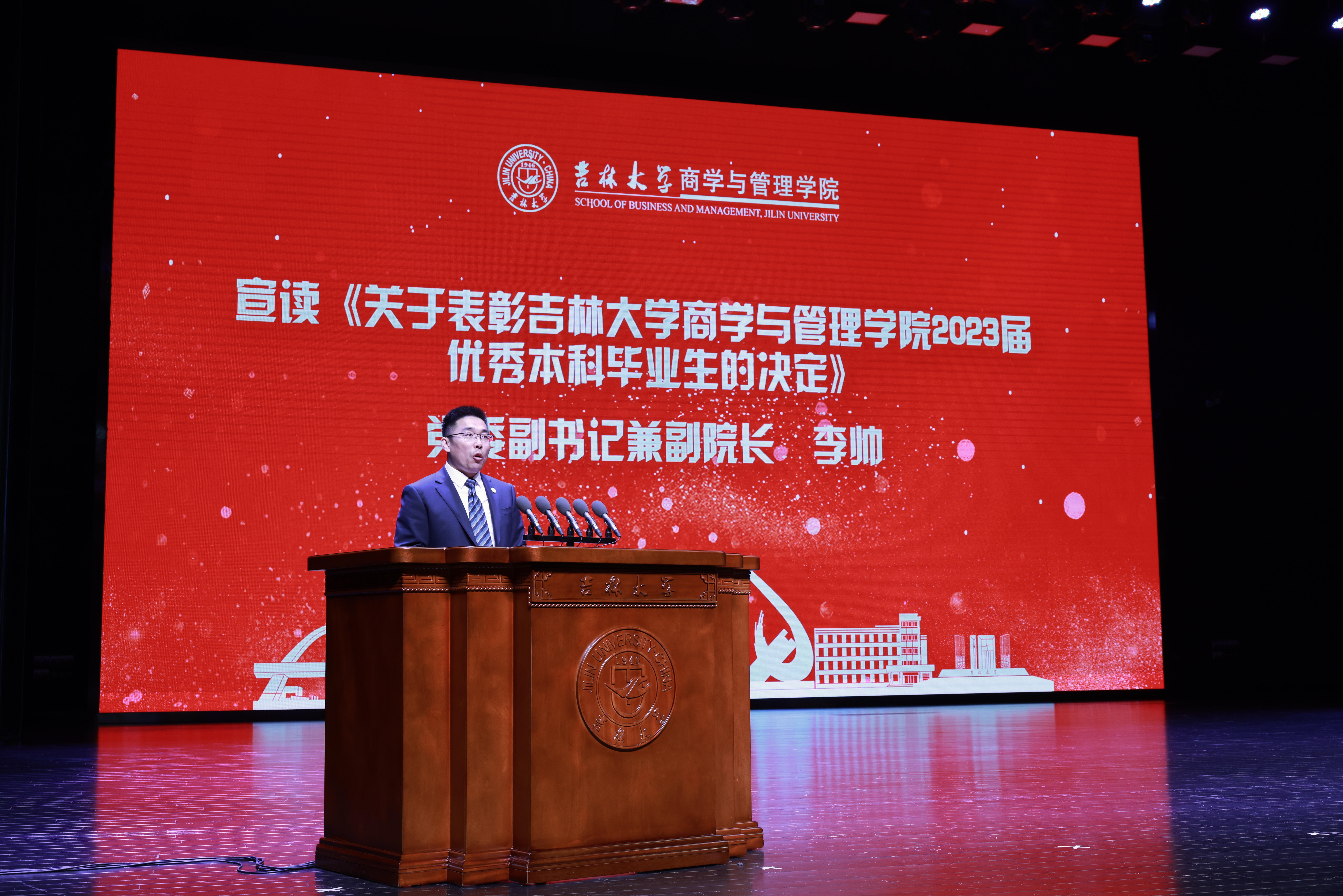 常务副院长张世伟教授宣读了2023届本科生、硕士研究生和博士研究生授予学位决定。